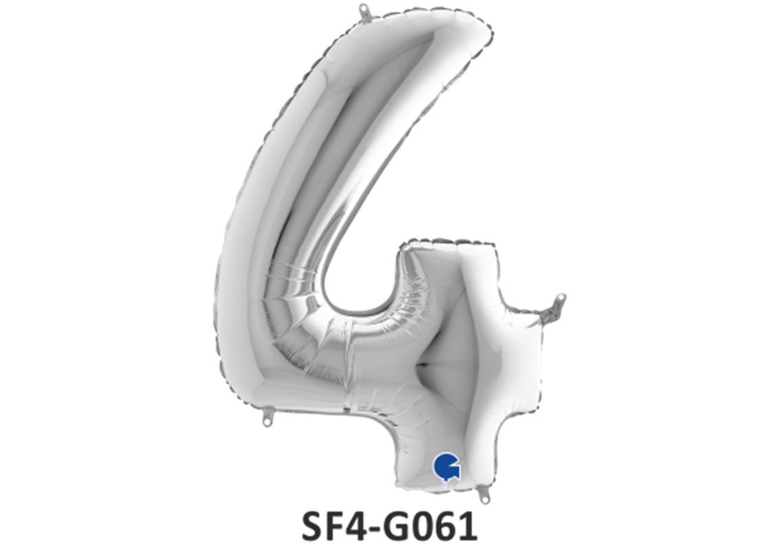 Zahlenfolienballon - Zahl 4 (vier) - in SILBER 80 cm