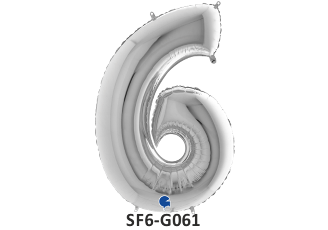 Zahlenfolienballon - Zahl 6 (sechs) - in SILBER 80 cm